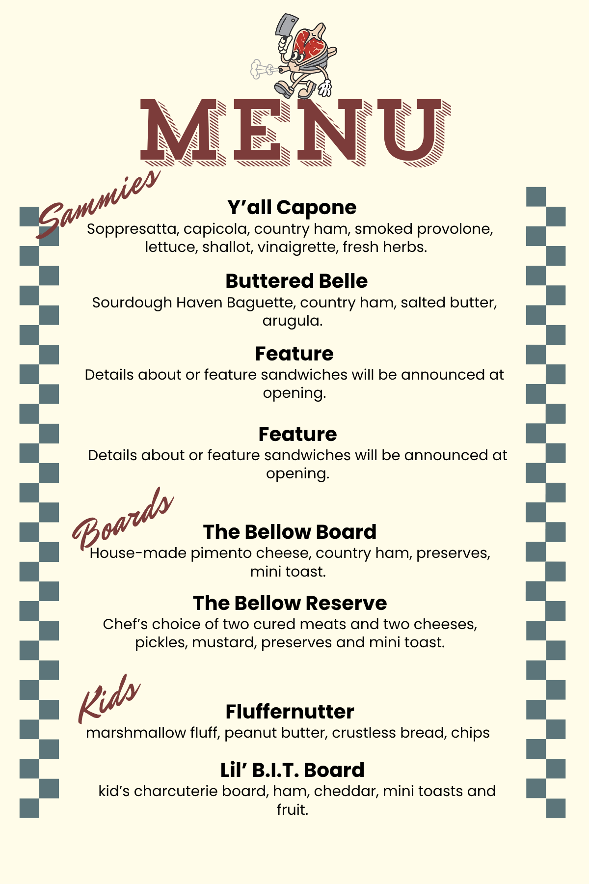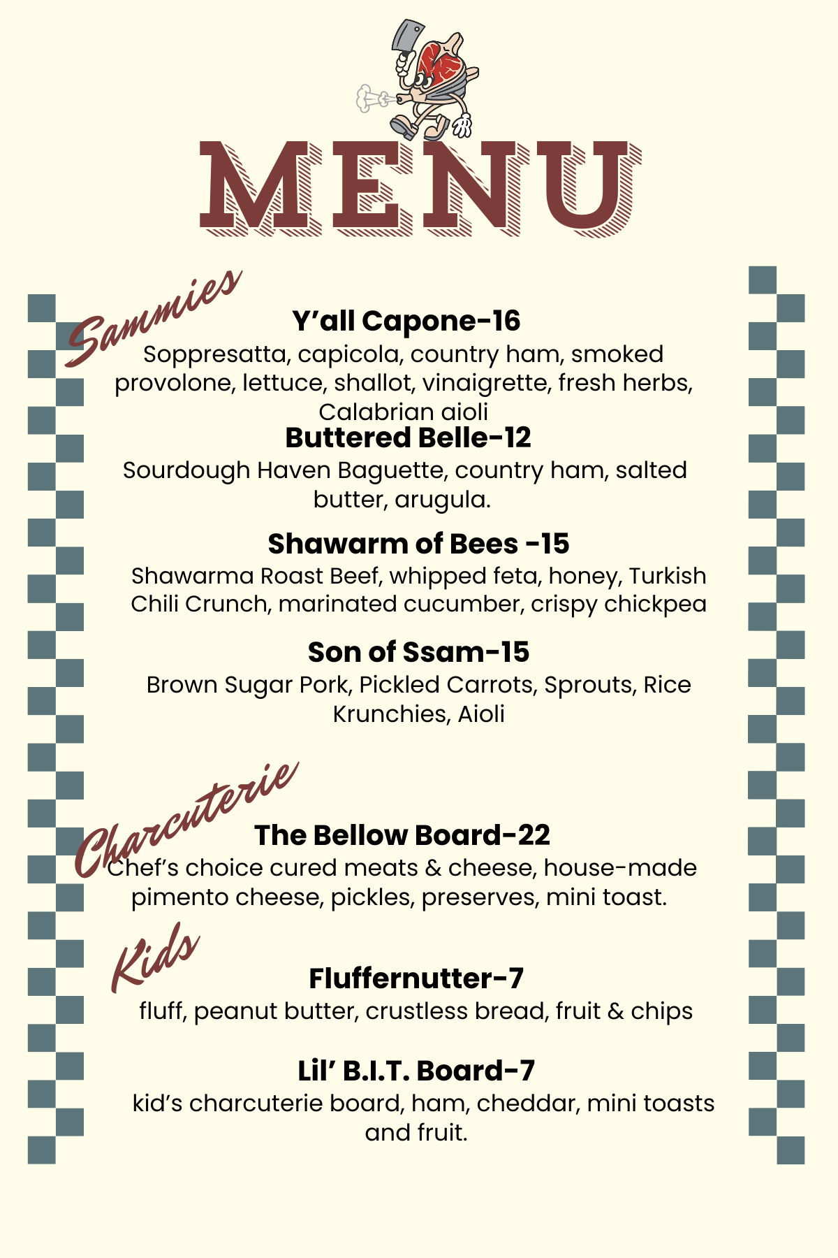 Check here for our most up-to-date menu — our feature sandwiches and seasonal offerings change week to week.